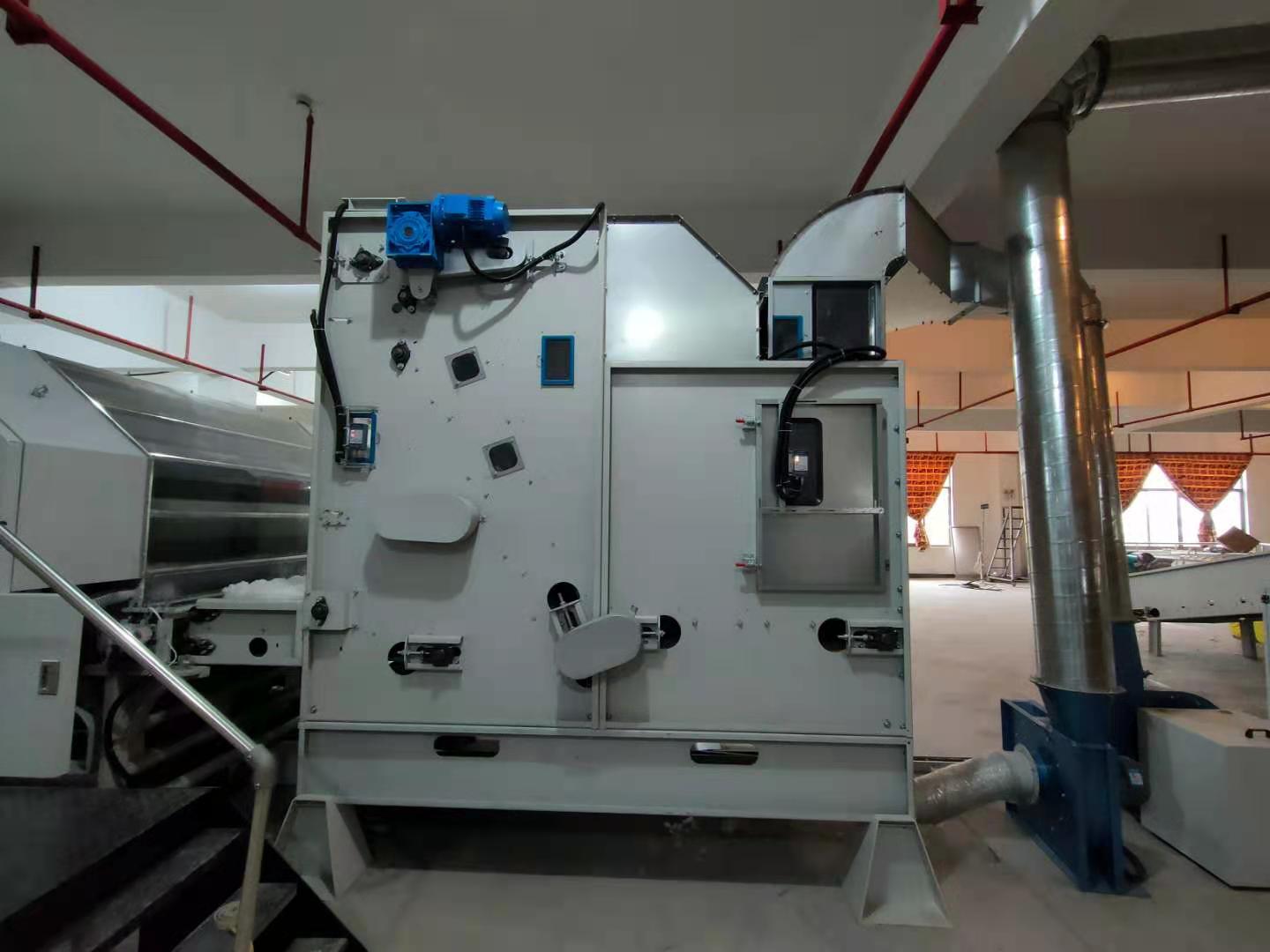 本生產(chǎn)線專為化纖填充被套的自動(dòng)化生產(chǎn)設(shè)計(jì),涵蓋從纖維梳理、填充物鋪網(wǎng)到被套封裝的全流程,具有高效、精準(zhǔn)、衛(wèi)生等特點(diǎn),適用于家紡、酒店用品、醫(yī)療寢具等領(lǐng)域的大規(guī)模生產(chǎn)。 化纖原料預(yù)處理 原料開松:將壓縮的化纖塊(如滌綸、PP棉等)通過(guò)開松機(jī)打散,形成蓬松狀態(tài)。 纖維梳理:通過(guò)高速梳理機(jī)將纖維梳理成均勻的網(wǎng)狀結(jié)構(gòu),確保填充物無(wú)結(jié)塊、厚度一致。 填充物鋪網(wǎng)與定型 交叉鋪網(wǎng)機(jī)將梳理后的纖維多層疊加,調(diào)節(jié)克重和蓬松度。 短程熱風(fēng)定型(可選):通過(guò)低溫?zé)犸L(fēng)穩(wěn)定纖維結(jié)構(gòu),增強(qiáng)回彈性。 被套裝配與封裝 自動(dòng)裁切:按預(yù)設(shè)尺寸切割填充層,匹配被套外殼。 充填裝套:通過(guò)充填機(jī)將纖維層均勻填入預(yù)制的被套外殼,避免分布不均。 絎縫/封口:采用多針絎縫機(jī)固定填充物,或通過(guò)超聲波封口機(jī)完成密封(防螨抗菌需求場(chǎng)景)。 質(zhì)檢與包裝 重量檢測(cè):確保每床被子填充量符合標(biāo)準(zhǔn)。 金屬探測(cè):排除生產(chǎn)過(guò)程中可能的金屬雜質(zhì)。 自動(dòng)折疊包裝:真空壓縮(可選)后裝箱。 高效率:全自動(dòng)化流程,日產(chǎn)量可達(dá)2000~5000床(視規(guī)格而定)。 精準(zhǔn)控制:PLC系統(tǒng)調(diào)節(jié)填充量、絎縫間距等參數(shù),誤差≤2%。 衛(wèi)生環(huán)保:封閉式填充環(huán)節(jié)減少粉塵污染,支持可回收化纖材料。 靈活適配:可快速切換不同被套尺寸(單人/雙人/加大)和填充克重。 智能分揀系統(tǒng):聯(lián)動(dòng)MES系統(tǒng)實(shí)現(xiàn)訂單批次管理。 抗菌處理模塊:在線噴涂抗菌劑(適用于醫(yī)療、兒童用品)。生產(chǎn)線概述